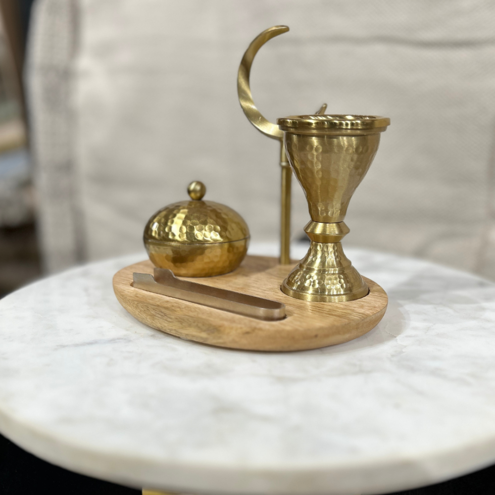 هذا الطقم ليس مجرد قطعة ديكور، بل هو أيضاً وسيلة لتعطير منزلك بلمسة شرقية مميزة. كما أنه يعد هدية رائعة للأحباء في المناسبات الخاصة، مما يجعله خياراً مثالياً لكل من يرغب في إضافة لمسة من الفخامة إلى حياته اليومية.
