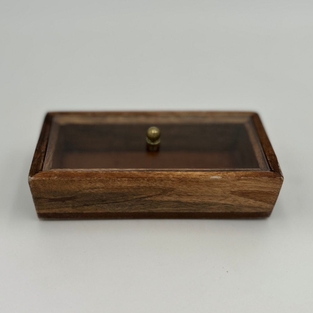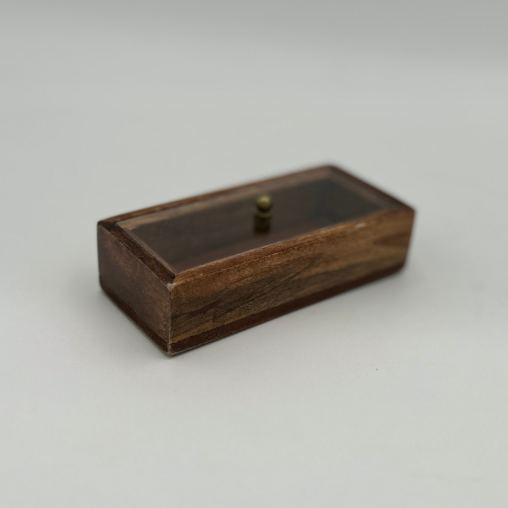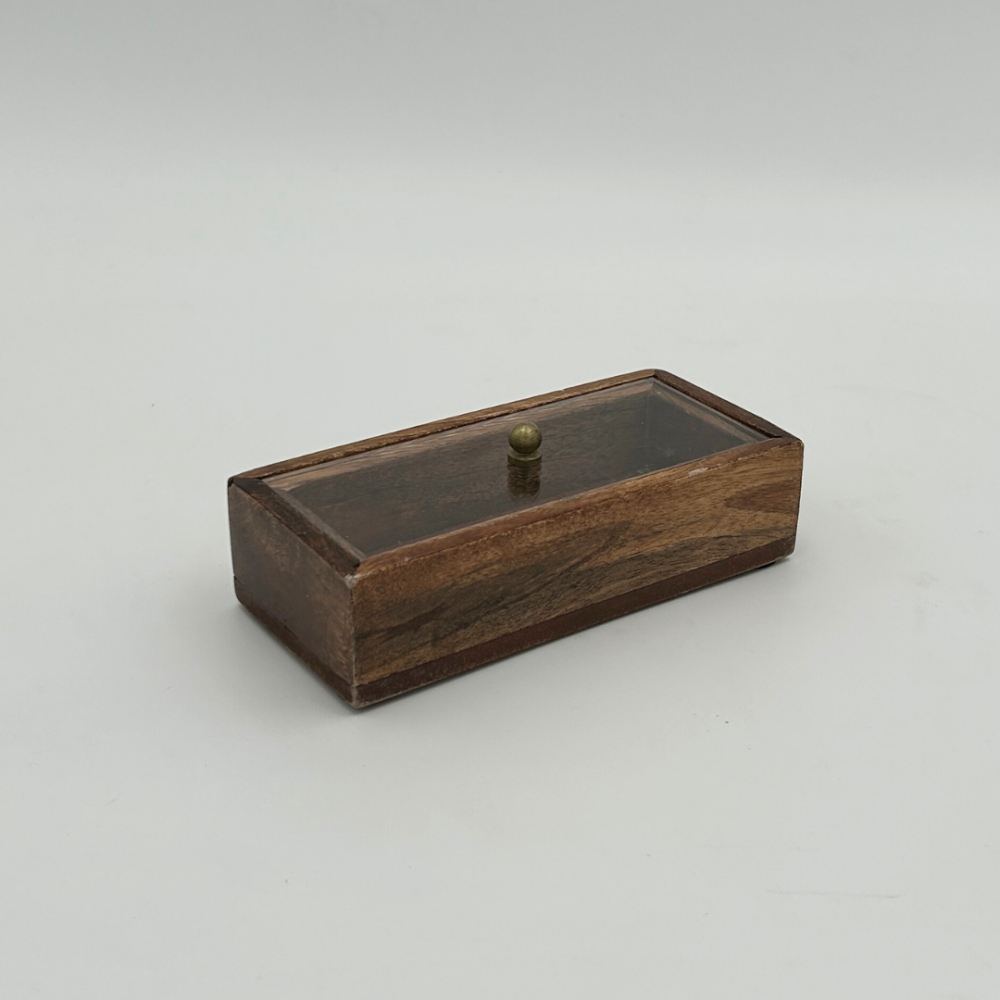 استمتع بالأناقة مع علبة خشبية بغطاء، التي تمزج بين التصميم التراثي والحداثة. تتميز هذه العلبة المستطيلة المصنوعة من الخشب الطبيعي الداكن بغطاء شفاف من الأكريليك، مما يمنحها مظهراً جذاباً وعصرياً. تأتي العلبة بأبعاد مثالية، حيث يبلغ طولها 16 سم، وعرضها 7 سم، وارتفاعها 6 سم، مما يجعلها مناسبة للاستخدام اليومي أو كقطعة ديكور مميزة.