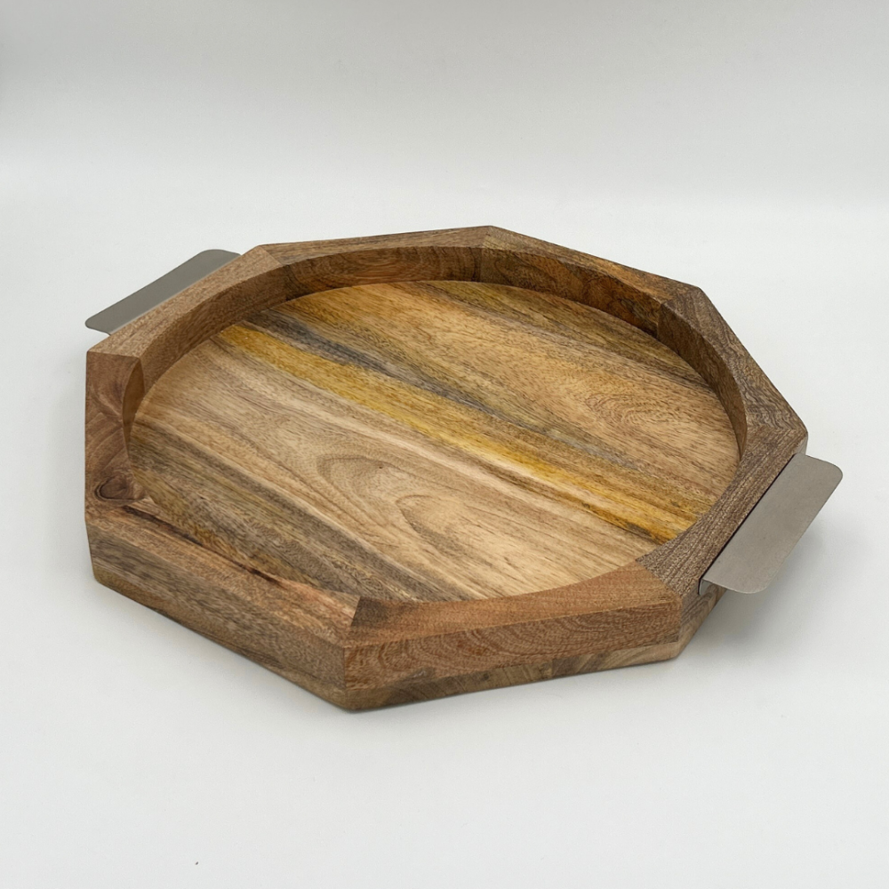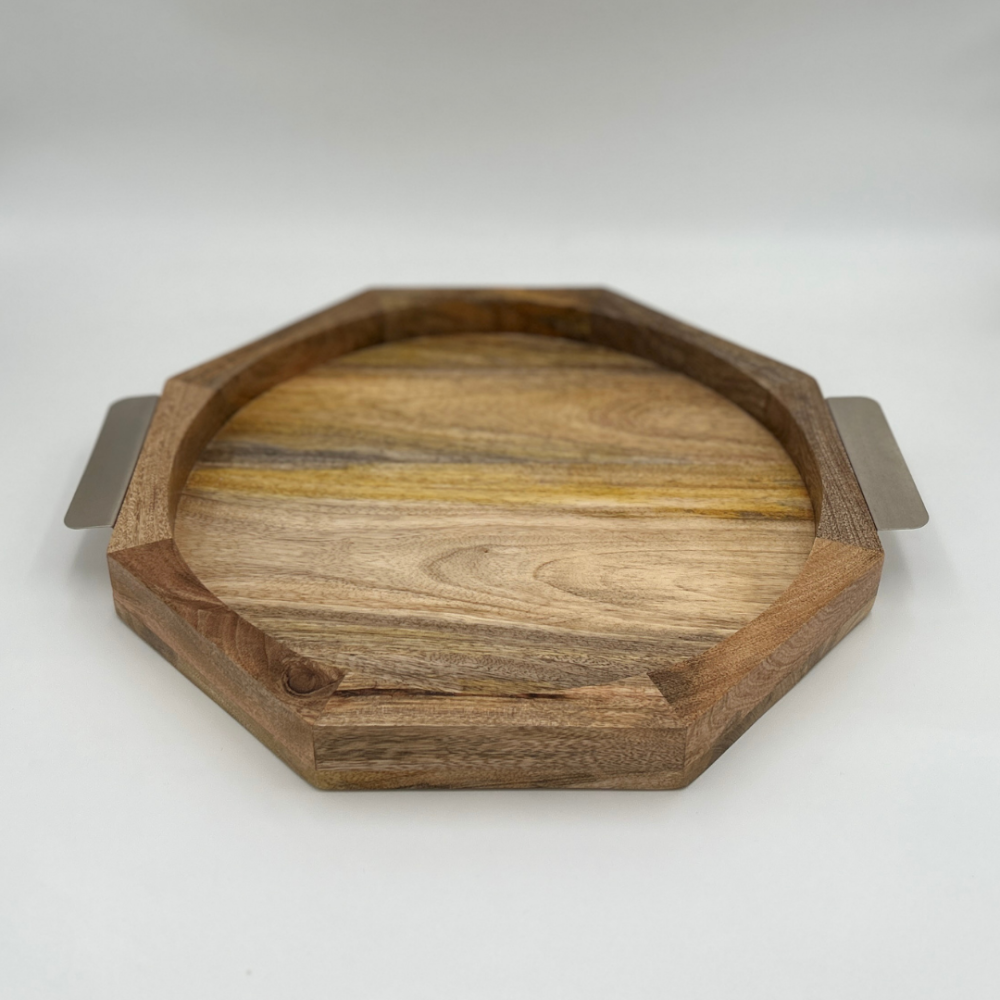 يتكون الطقم من طوفريتين بتصميم فريد، حيث يبلغ قطر الطوفريّة الكبيرة 50 سم، بينما الطوفريّة الأصغر تأتي بقطر 40 سم. هذا التنوع في الأحجام يجعلها مثالية لتقديم مختلف الأطباق والمشروبات بأسلوب راقٍ. زواياه الثمانية تضيف لمسة جمالية، بينما المقابض الفضية المصنوعة من الستيل تمنح الطقم لمسة عصرية وسهولة في الاستخدام.