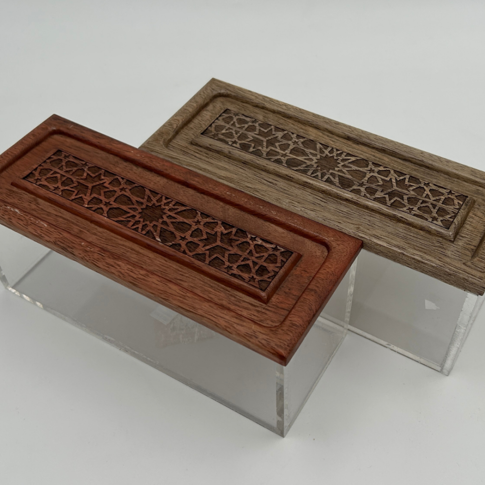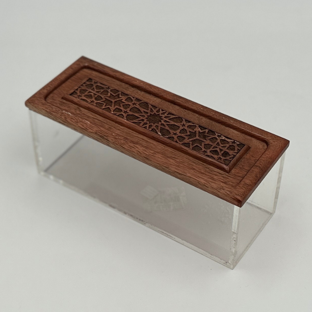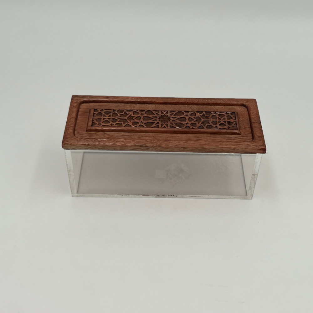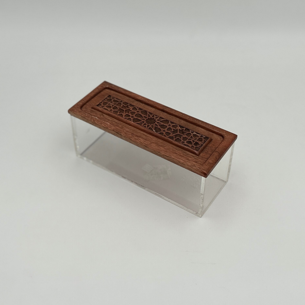 تقدم لكم علبة اكريليك بغطاء بتصميم عصري ونقش اسلامي فاخر، مما يجعلها الخيار المثالي لمحبي الأناقة والتميز. تتميز هذه العلبة بخامة الأكريليك الشفاف الذي يمنحها مظهرًا عصريًا، بينما يضيف الغطاء الخشبي المنقوش لمسة من التراث والثقافة. يتوفر الغطاء بخيارين، خشب فاتح وخشب غامق، مما يتيح لك اختيار الأنسب لديكور منزلك.