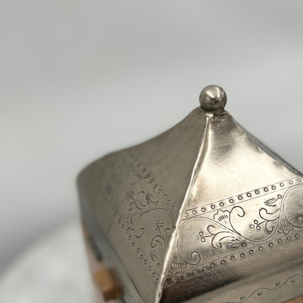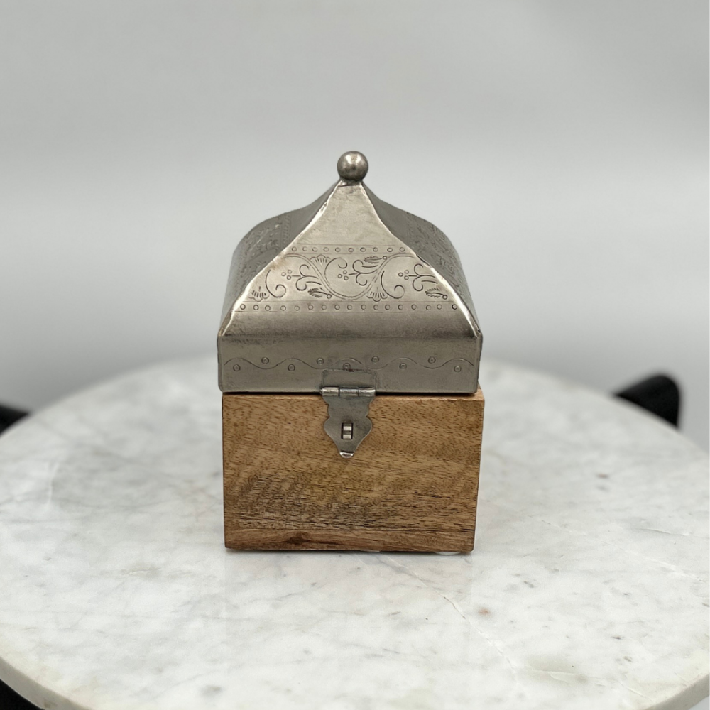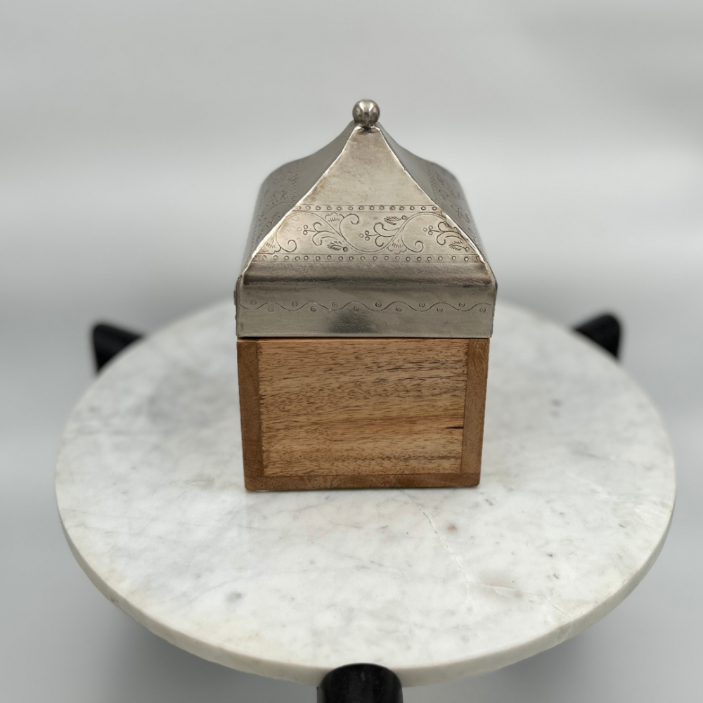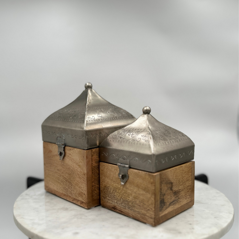 استمتع بفخامة لا مثيل لها مع صندوق خشبي بغطاء أنيق، يجمع بين التصميم العصري والجودة العالية. يتميز هذا الصندوق الخشبي المربع بغطاء هرمي فضي منقوش، مما يجعله قطعة فريدة من نوعها تضيف لمسة من الأناقة إلى أي مساحة. يتوفر الصندوق بمقاسين مختلفين، حيث يبلغ حجم الكبير 14 سم × 14 سم بارتفاع 23 سم، بينما يأتي الصغير بحجم 11 سم × 11 سم وارتفاع 17 سم، مما يجعله مثالياً للتخزين أو كقطعة ديكور راقية.